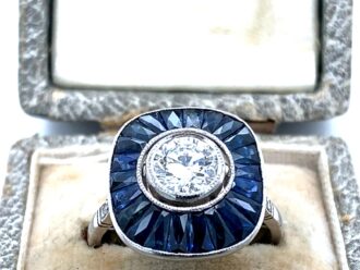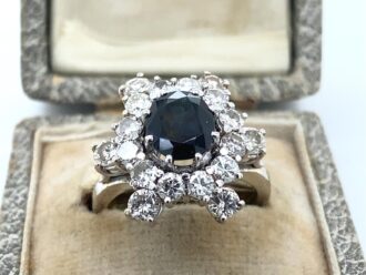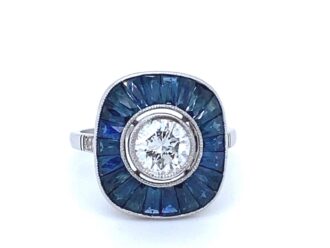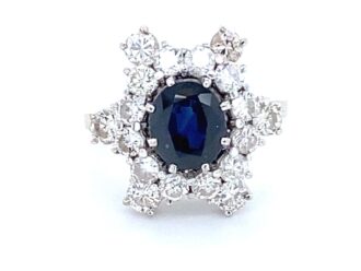 Platina ring diamant saffier