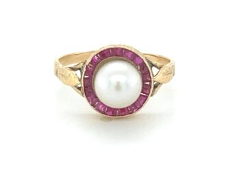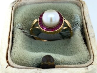 18k gouden ring parel robijn