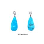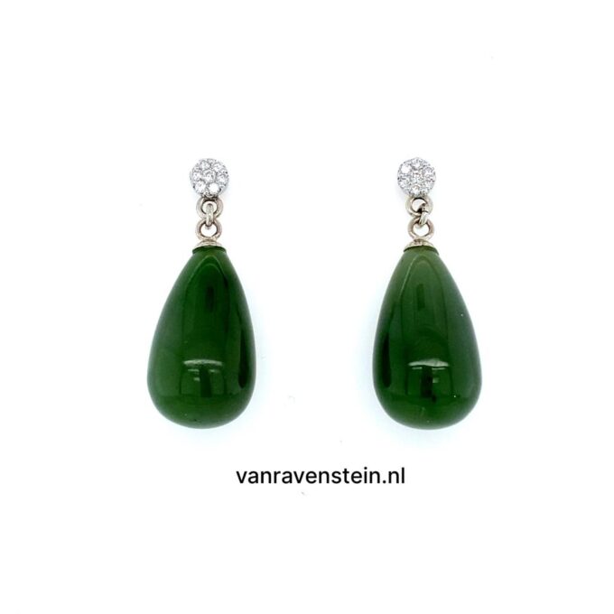 14k witgouden oorstekers rozetjes met 0.30ct briljant H VS2 en 18k witgouden pampels Jade