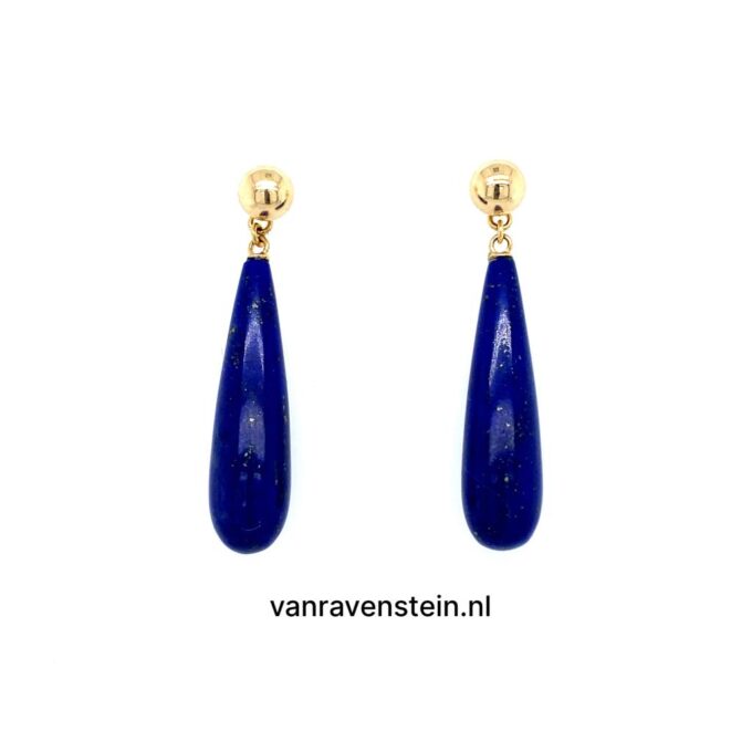 14k geelgouden oorstekers rozetjes met lapiz lazulli pampels
