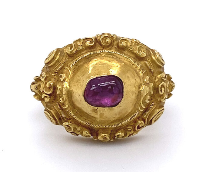 23.6k Geelgouden ring met robijn (sultan ring) Origine: mogelijk indonesië