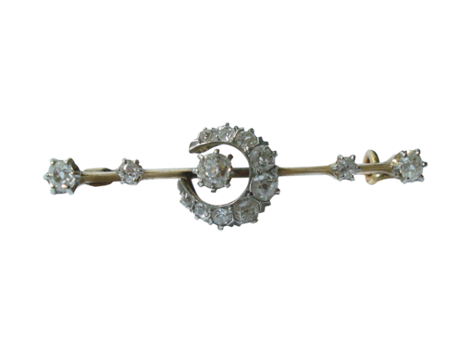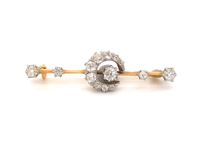 Platina gouden broche met oud slijpsel diamant